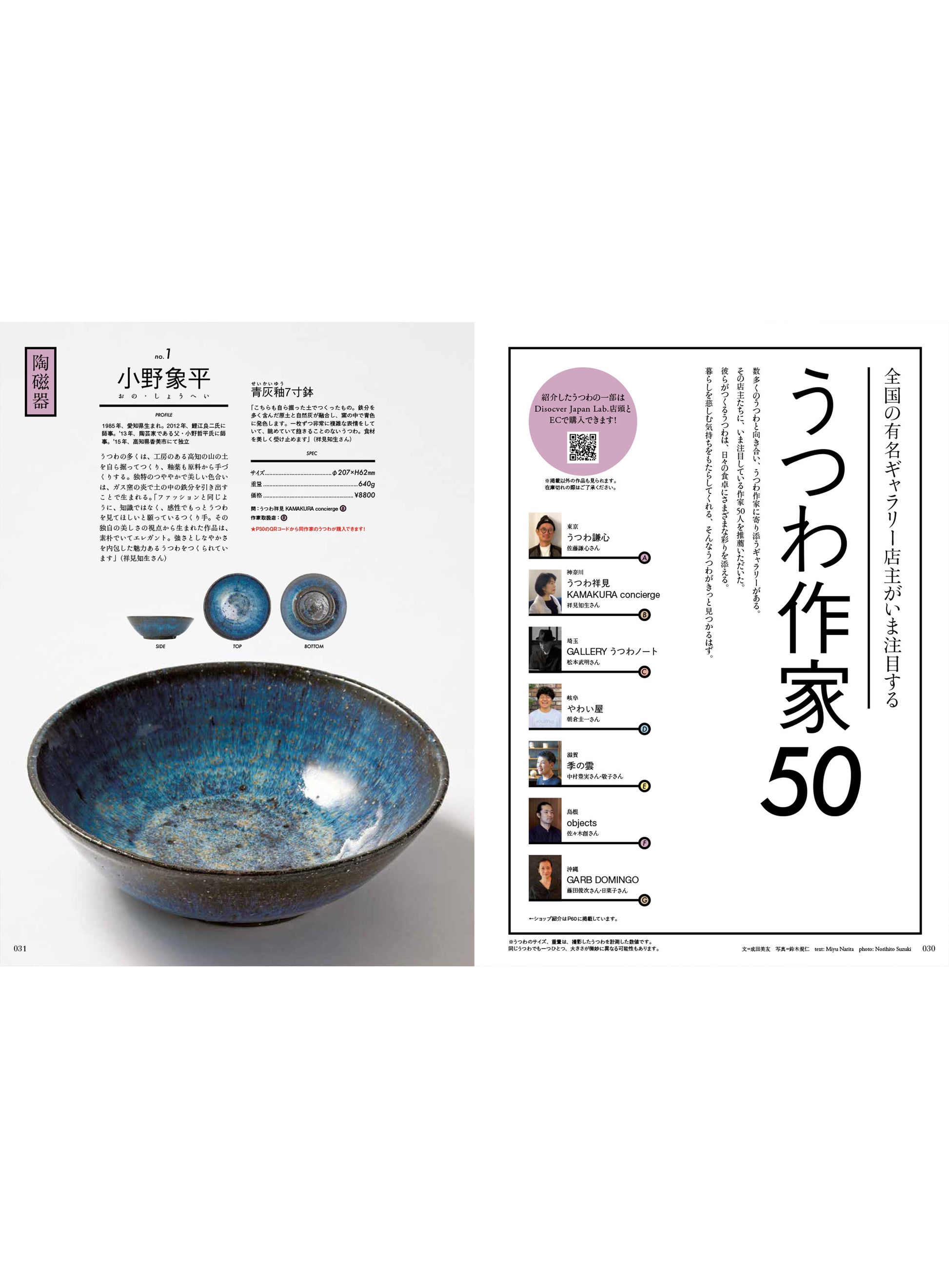 Discover Japan 2020年12月号「全国の有名ギャラリー店主が今注目するうつわ作家50」2020/11/06発売
