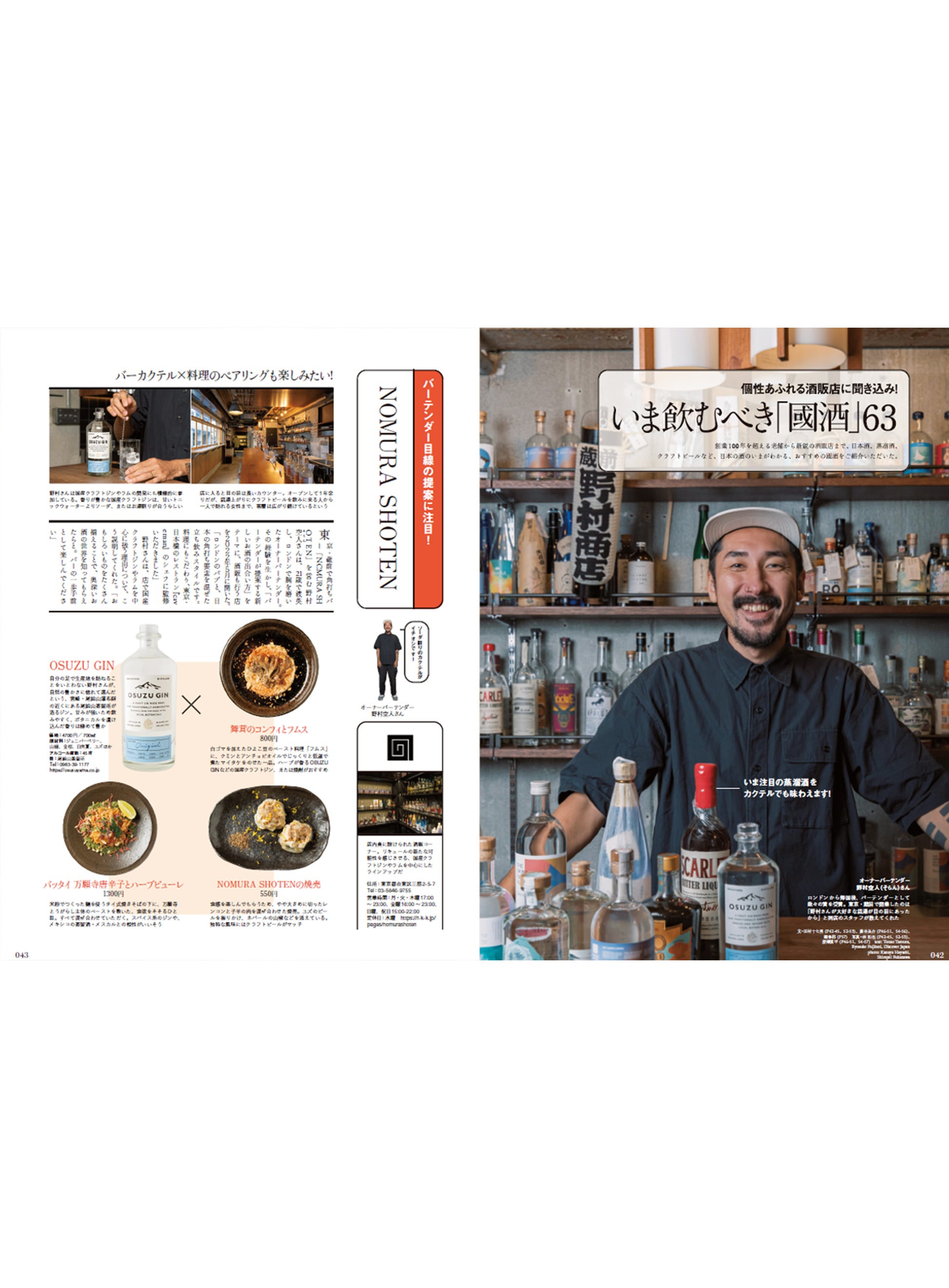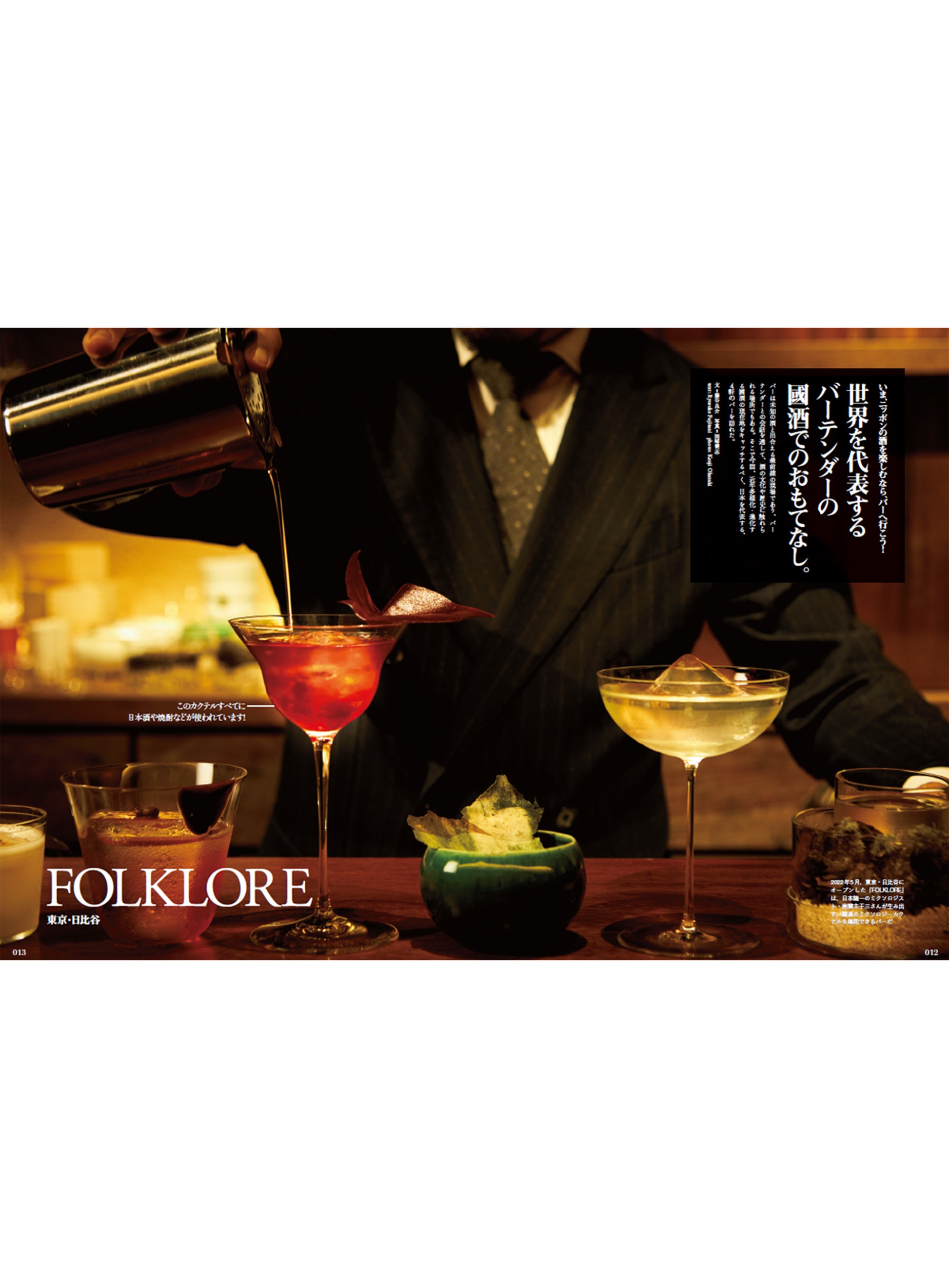 巻頭では、「FOLKLORE」南雲主于三さんをはじめ、世界を代表するトップバーテンダーの方々に、國酒の現在地と最先端のジャパニーズカクテルを教えていただくなど、世界のフーディを魅了する全国各地のバーを取り上げています。