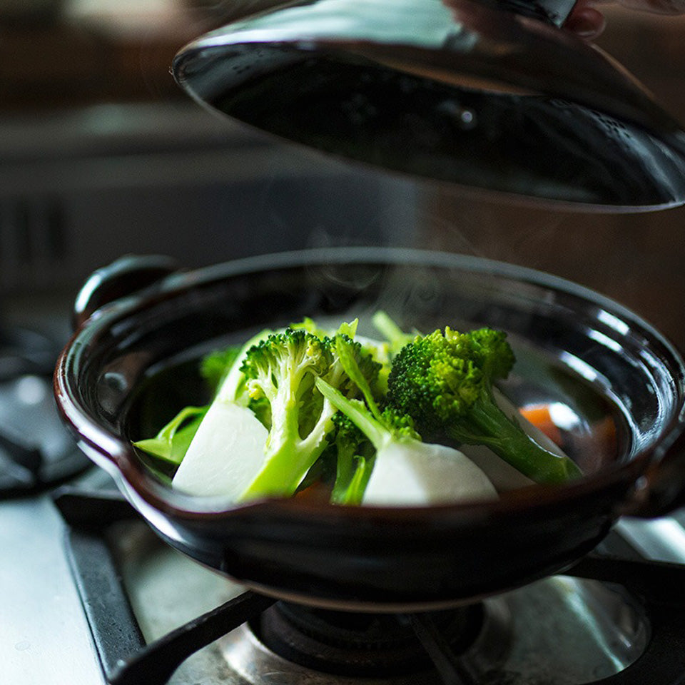 「土鍋」といえば冬にしか使わないイメージのある方も多いはず。ですが、実は多様な使い方ができる非常に便利な調理道具です。伊賀焼窯元「土楽(圡楽・どらく)」の土鍋は耐火性に優れ、冬場の定番・鍋ものはもちろん「煮込む」「炒める」「蒸す」……といったさまざまな調理に対応しています。