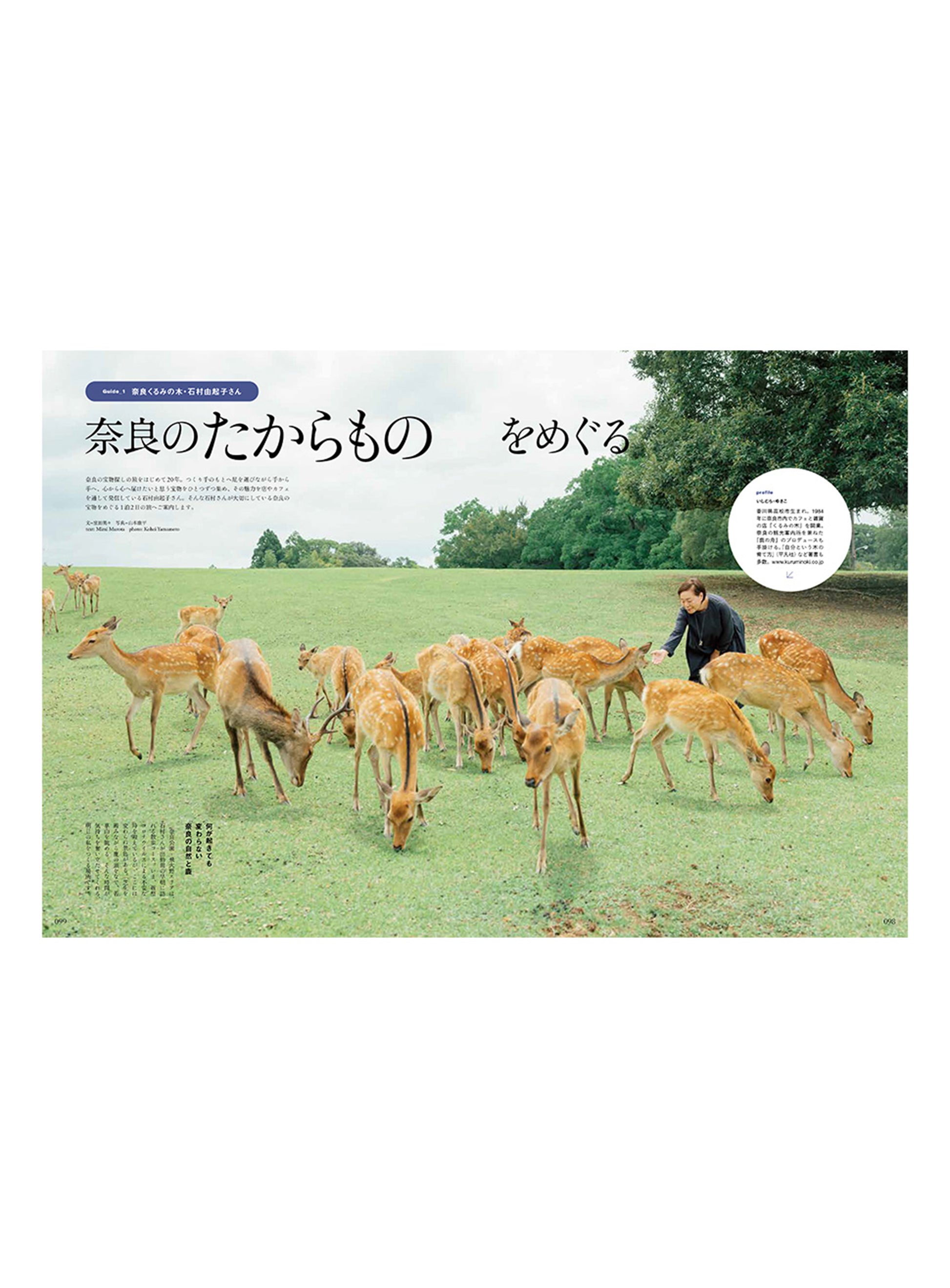 奈良は、たからもの、大和の伝統野菜、工芸、日本酒など、テーマでめぐる旅を提案。誰もが一度は訪れたことのある場所も、大人になったいまこそ気づく、新たな発見があるはずです。くるみの木・石村由起子さん、映画監督・河瀬直美さん、中川政七商店・中川政七さん、清澄の里 粟・三浦雅之さん、今西酒造・今西将之さん……、奈良を愛するクリエイターたちの、とっておきの奈良旅をぜひ体験してみてください。