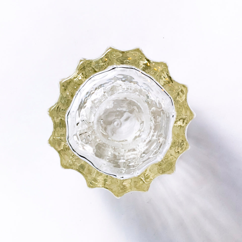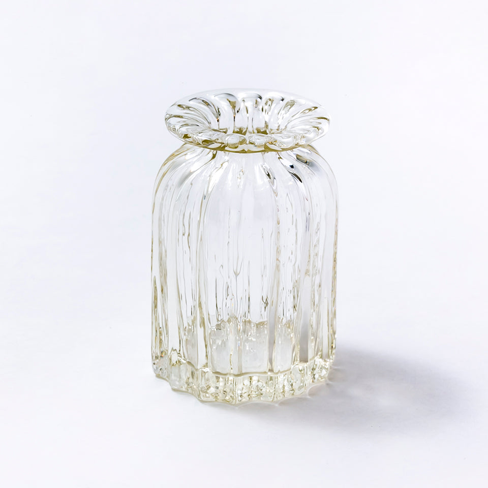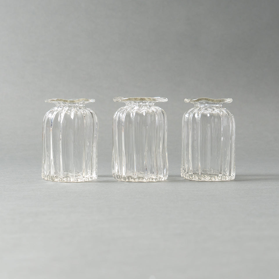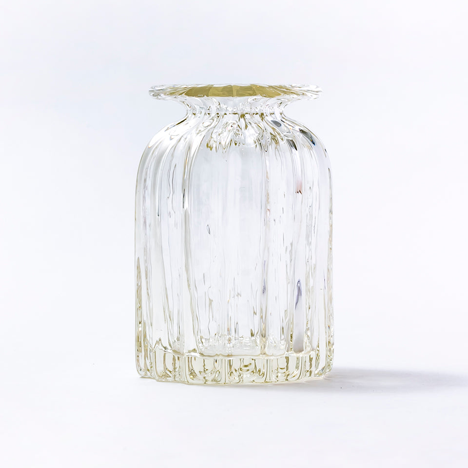 人は、心地よさそうなものを見ると、つい触れたくなってしまうが、安土草多さんの作品もしかり。目の前にすると、無意識に手が伸びてしまう。少し丸みを帯びたフォルム。ほんのり黄みがかったガラスの表面は、ゆらゆらと揺らいでいる。光にかざせば、ニュアンスのある陰影がささやかに現れる。触れていると、懐かしさとともになんだか夢心地の気分になってくるから不思議だ。