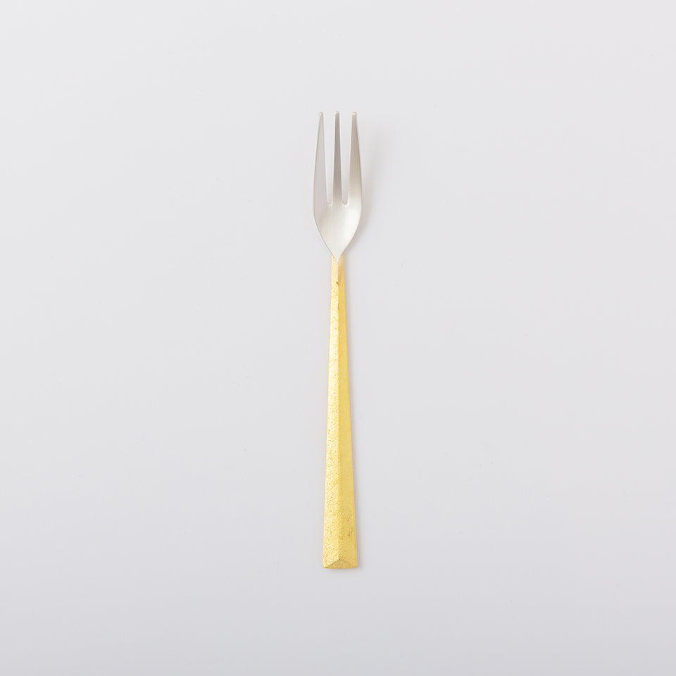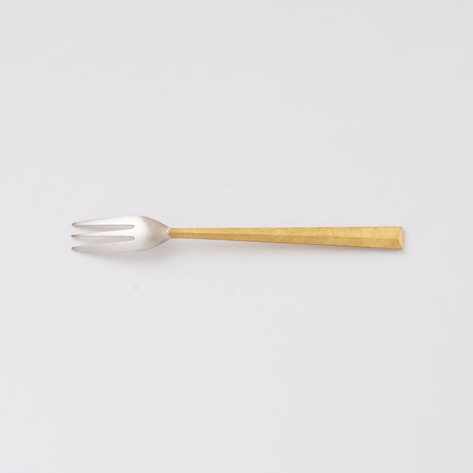 口に含む部分は、真鍮を磨いた後に銀メッキを施してあるので金属臭がなく、口当たりもなめらか。ケーキや果物などのデザートにおすすめ。