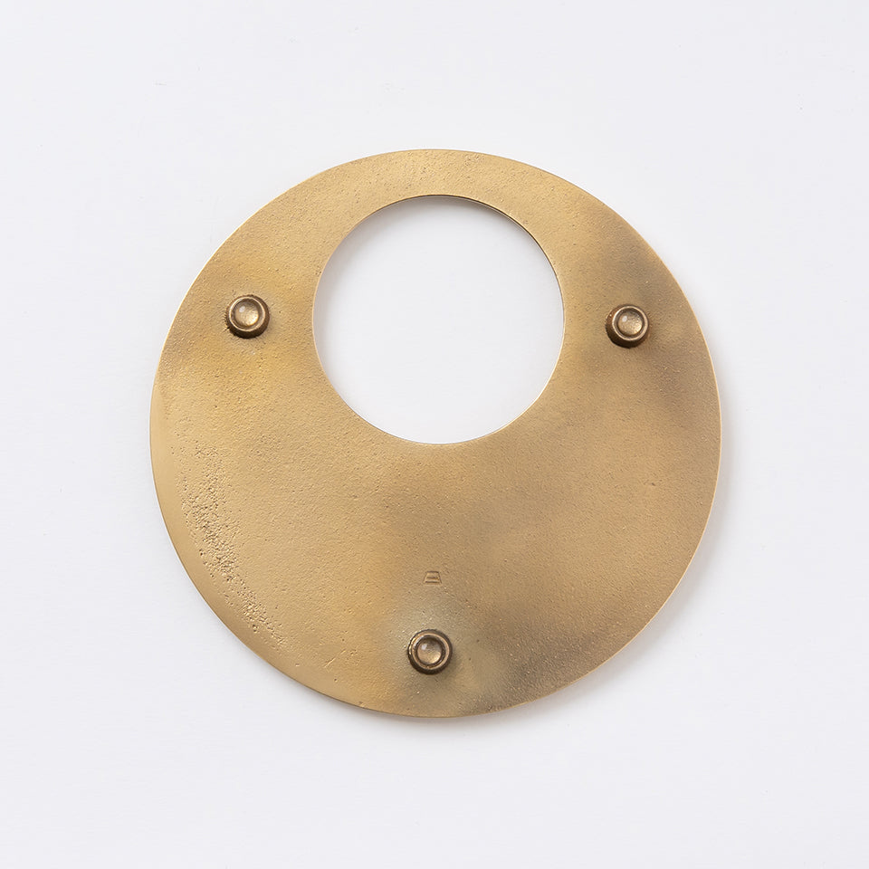 サイズ:Φ130mm×H12mm 素材:真鍮 <お取り扱いについて> ・一点一点、違う表情の鍋敷きは、たくさん手で触れて、使いこむうちに味わい深い色に変化していきます。 ・裏側にシリコンの立体シールを貼ってますので、テーブルを傷つける事なくご使用いただけます。 ・汚れた場合には、水洗いしていただいても問題ありませんが、しっかりと水滴をふき取ってください。水分が付着したままですと、過度な変色の恐れがあります。 |