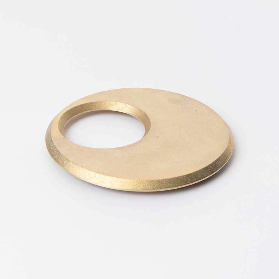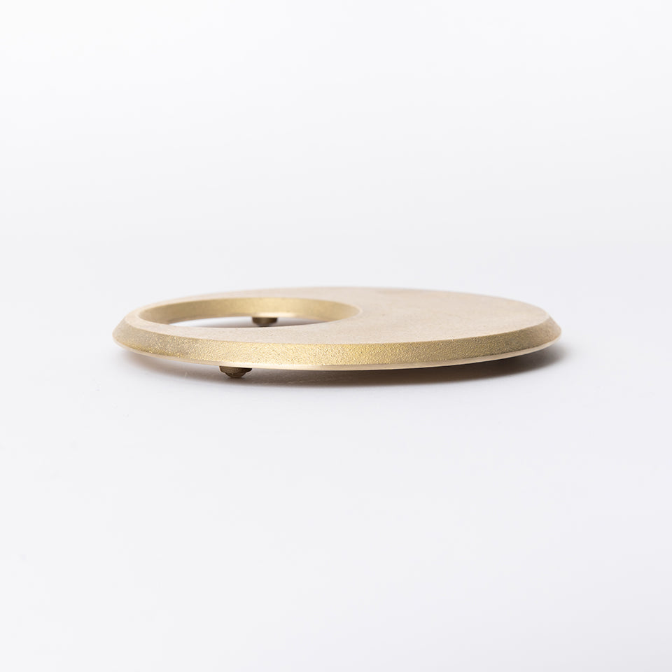 何度見ても惚れ惚れとしてしまう、美しい鍋敷きのシリーズ。砂型の中に溶かした金属を流し込んで形作られた「月」の鍋敷き。表面の細かな砂目の跡は本物の月のクレーターのような表情です。触れて、使っていくほどに独自の風合いを刻んでいく。ダイニングで共に時を重ねたい存在です。