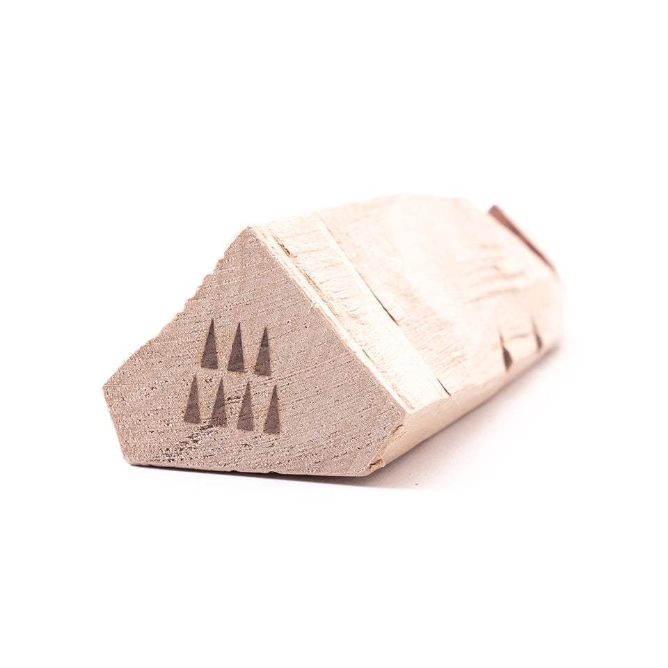 「木を割ったときの荒々しい木肌や木目を残し、木材のねじれや多少の割れや節も生かしています。素材感が伝わるよう絵付けもシンプルに。怖いものをつくったつもりなのですが、”かわいい”、“おもしろい”と言ってもらえて、うれしい驚きでした」
