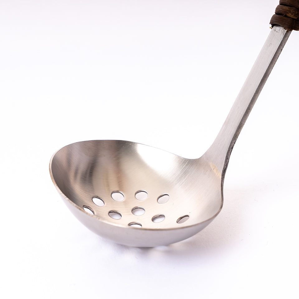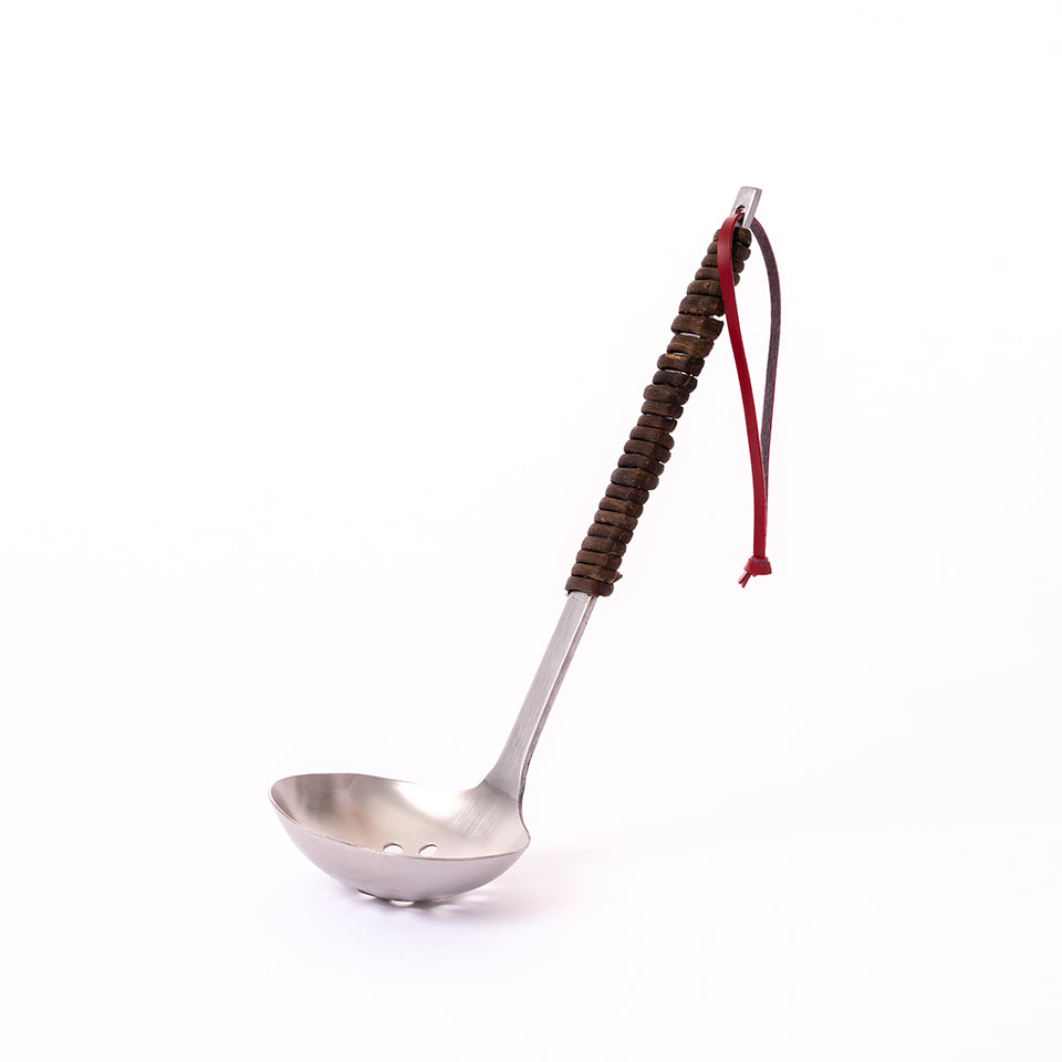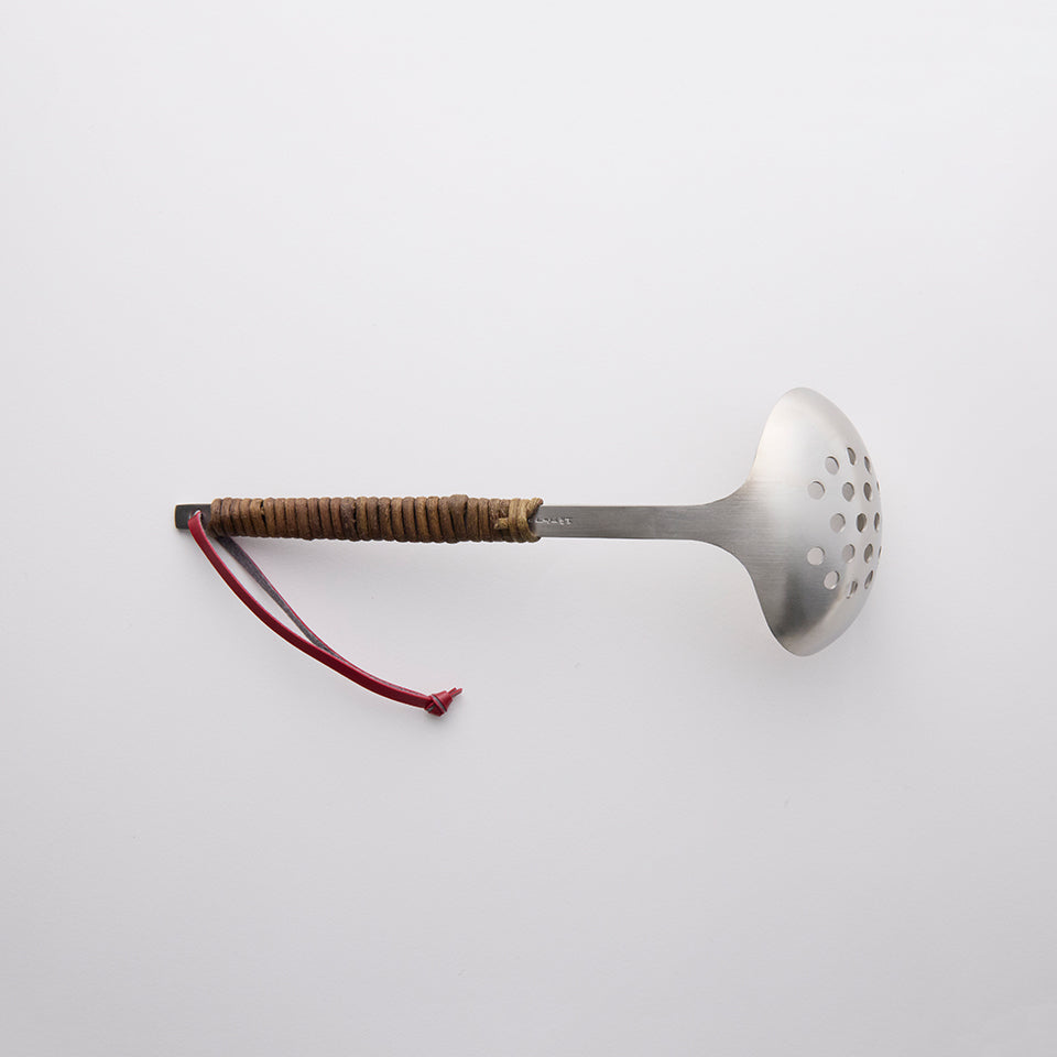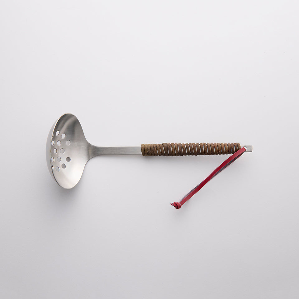 こちらは「パセリ 穴明お玉 大 アケビ巻」。卵を流し入れる、味噌を溶くなど、多彩な料理で重宝する名脇役。継ぎ目がないので、洗いやすく衛生的。サイズ違いの「パセリ 穴明お玉 小 アケビ巻 [11]」のお求めはこちらからどうぞ。