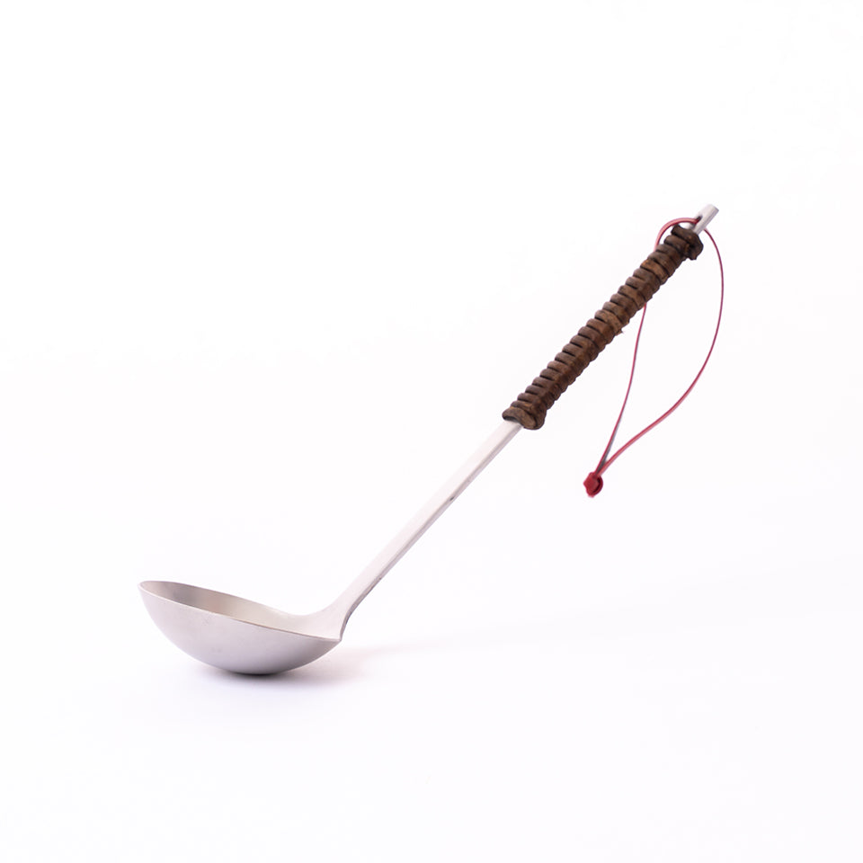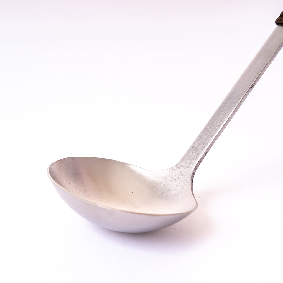 こちらは「パセリ お玉 小 アケビ巻」。すくいやすい楕円形のカップ。つるは、三条市の鎚起銅器工房「東伸工芸」の職人親子による手巻き。サイズ違いの「パセリ お玉 大 アケビ巻 [8]」のお求めはこちらからどうぞ。