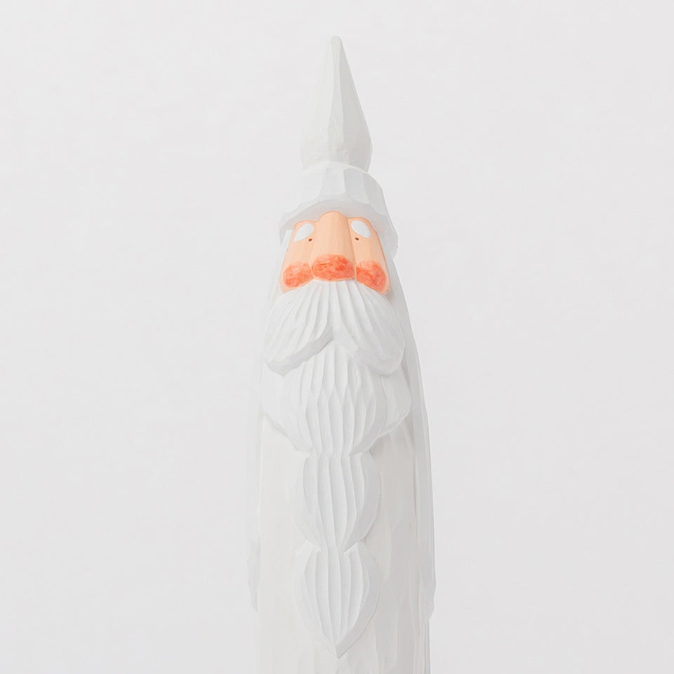 ふっくらと暖かそうにたくわえられたひげや、桃色の頬。一つひとつ手作業で彫刻され、表情や衣装、ひげの長さなどもそれぞれに異なる。自分だけの一体をじっくりと選びたい。