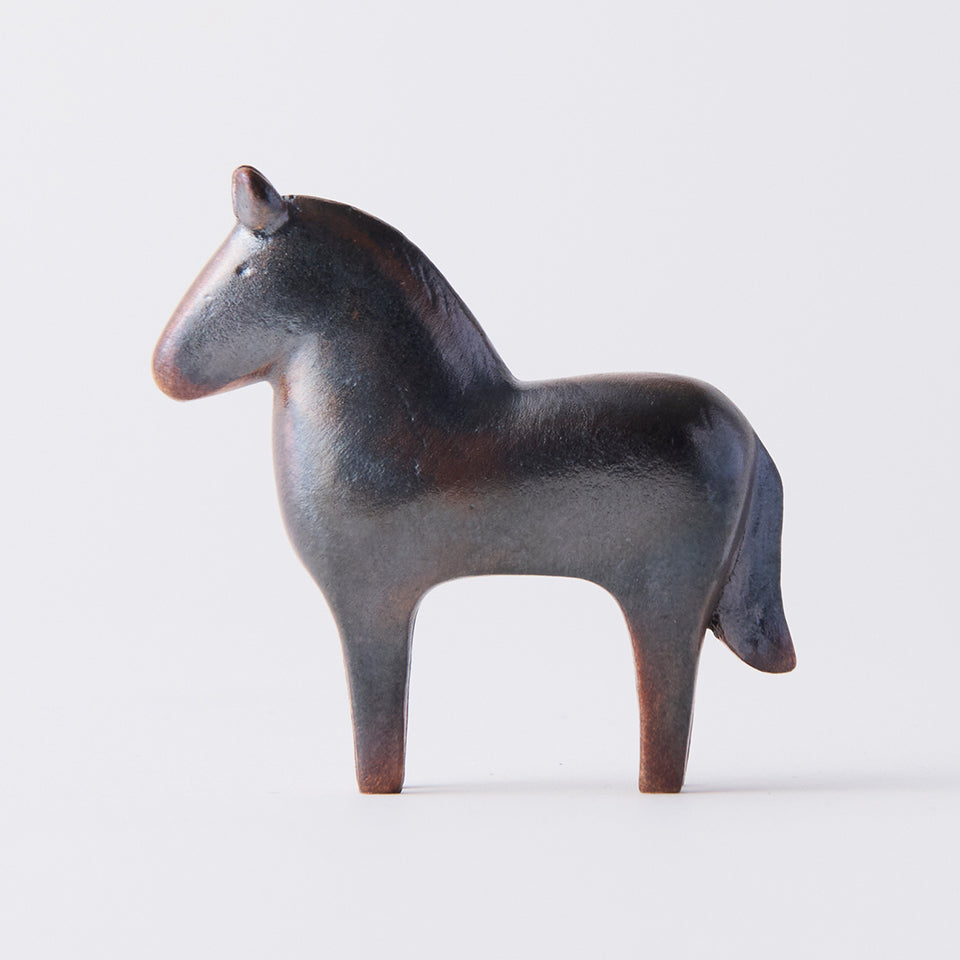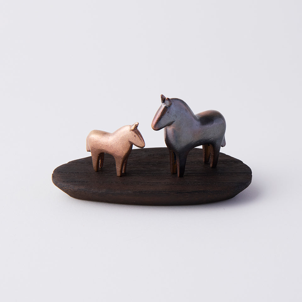 こちらは大寺幸八郎商店の「福うま大・小 楕円トレー 箱入りセット」。林悠介さんデザイン原型のミニ干支シリーズ。つくり込んだ造形をブロンズのロストワックス精密鋳造にて表現している。