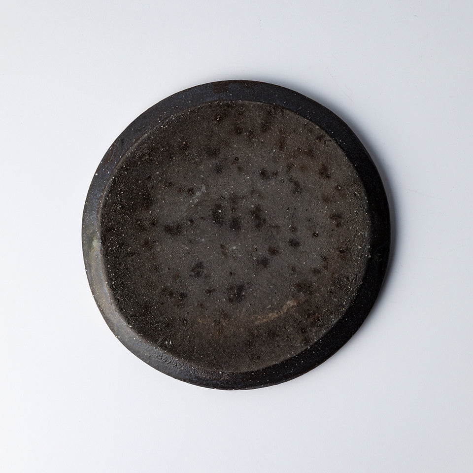【尾形アツシ】黒地刷毛目フラットプレート(13cm)[D2]