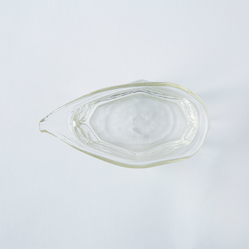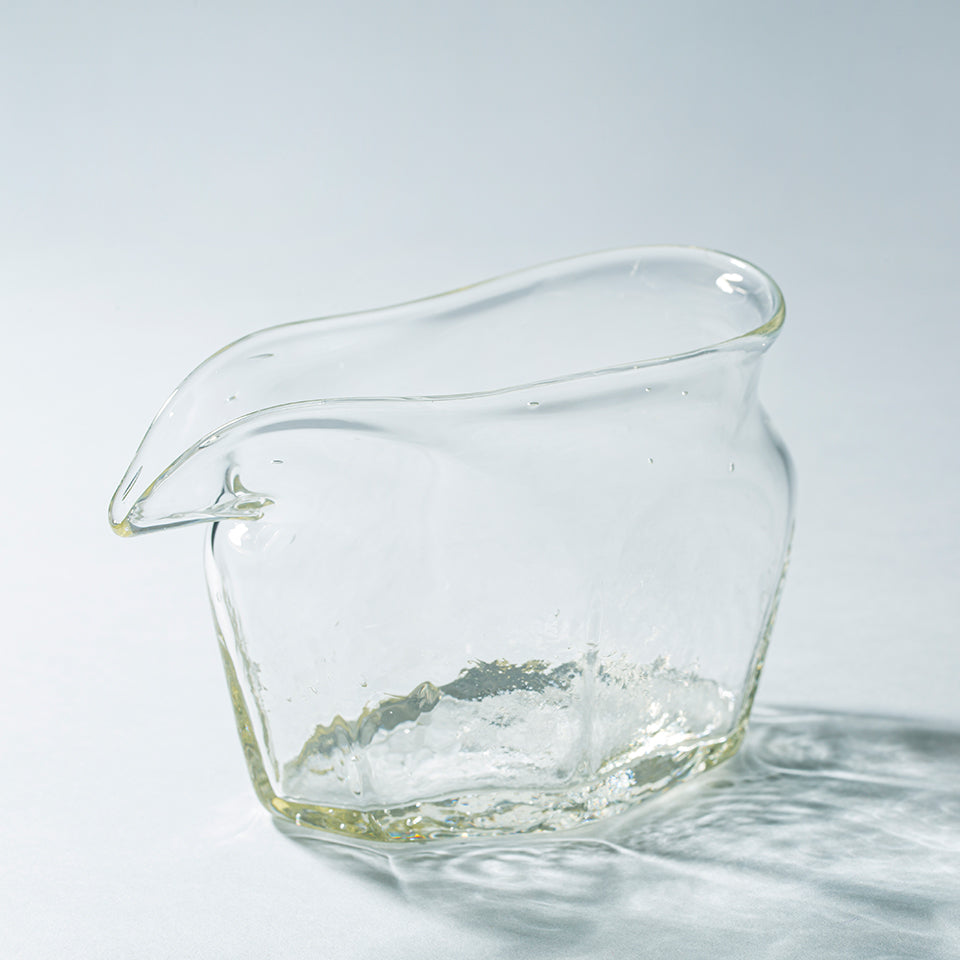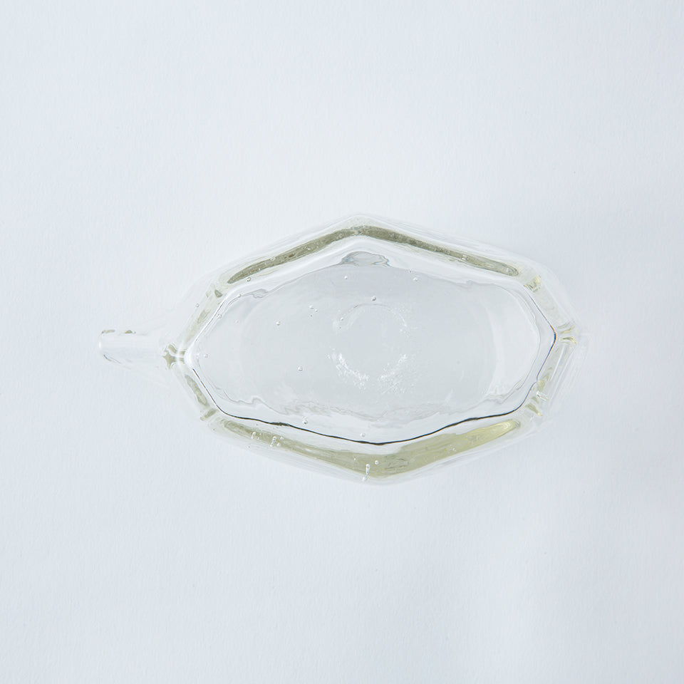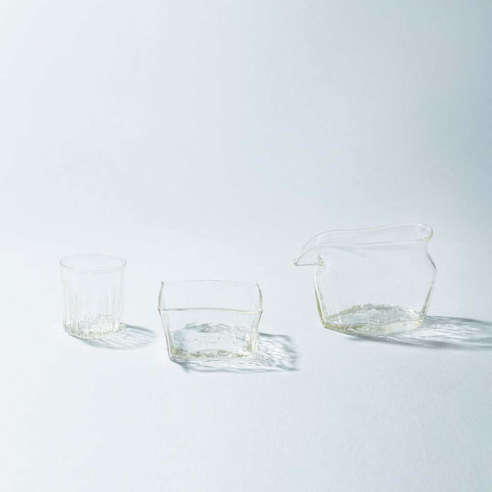人は、心地よさそうなものを見ると、つい触れたくなってしまうが、安土草多さんの作品もしかり。目の前にすると、無意識に手が伸びてしまう。少し丸みを帯びたフォルム。ほんのり黄みがかったガラスの表面は、ゆらゆらと揺らいでいる。光にかざせば、ニュアンスのある陰影がささやかに現れる。触れていると、懐かしさとともになんだか夢心地の気分になってくるから不思議だ。