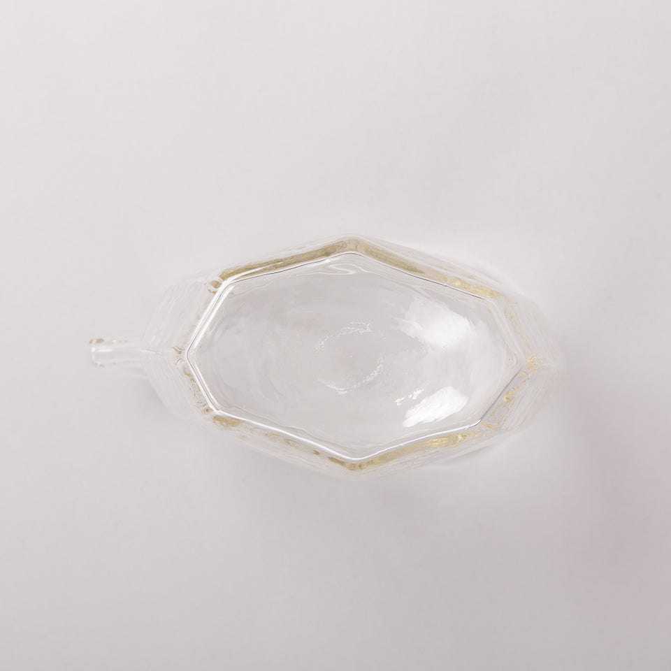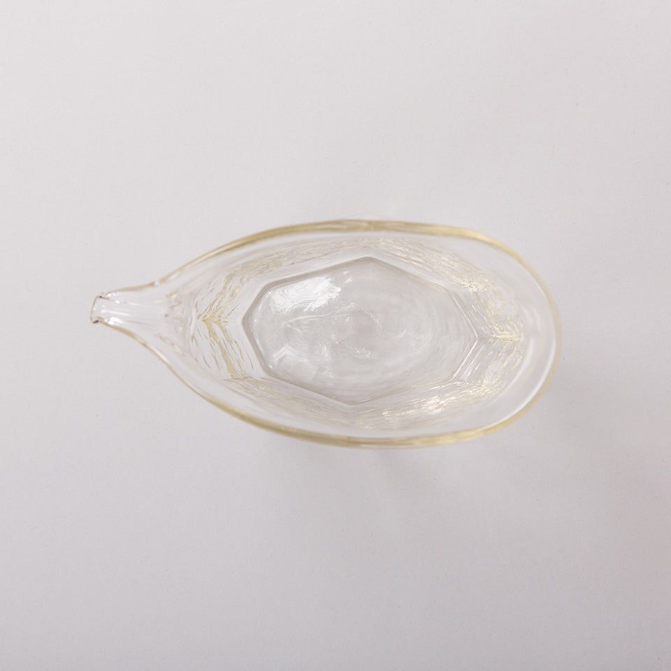 人は、心地よさそうなものを見ると、つい触れたくなってしまうが、安土草多さんの作品もしかり。目の前にすると、無意識に手が伸びてしまう。少し丸みを帯びたフォルム。ほんのり黄みがかったガラスの表面は、ゆらゆらと揺らいでいる。光にかざせば、ニュアンスのある陰影がささやかに現れる。触れていると、懐かしさとともになんだか夢心地の気分になってくるから不思議だ。