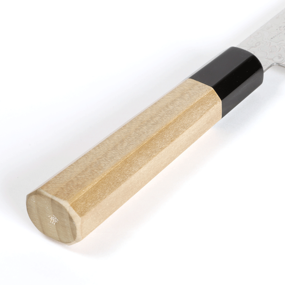 文様が美しい積層鍛地シリーズ。水牛八角柄で握りやすさとバランスを両立